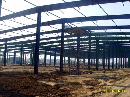 抵抗當地最大風壓,鋼結構工程不會被負風壓拉脫。抗風性能與鋼結構工程鋼梁和立柱的承重力,承重力的密度有關。阻止聲音從室外傳到室內或從室內傳到室外。在鋼結構工程層內填充隔音材料(通常由保溫棉充當),隔音效果以鋼結構工程層兩側的聲強差分貝表示。隔音效果與隔音材料的密度、厚度有關。防止雨水從外面滲到金屬屋面板內。雨水主要是通過搭接縫隙或節點進入鋼結構工程。要達到防滲的功能,需在螺釘口使用密封墊圈后采用隱藏式固定,在板的搭接處用密封膠或焊接處理,最好是用通長的板以消除搭接,在各種節點部位腹脹嚴密的防水處理。把雷電引到地面上,防止雷電擊穿鋼結構工程屋頂進入室內。白天通過天窗改善室內照明,節省能源。在金屬屋面的特定位置布置采光板或采光玻璃,應考慮天窗的使用壽命與金屬屋面板協調,在天窗與鋼結構工程鋼架的連接處做好承重處理。在建筑設計方面,設計鋼結構工程應考慮的因素主要是:建筑面積、建筑高度、圍護結構、門窗設計、地坪、適用、舒適等,